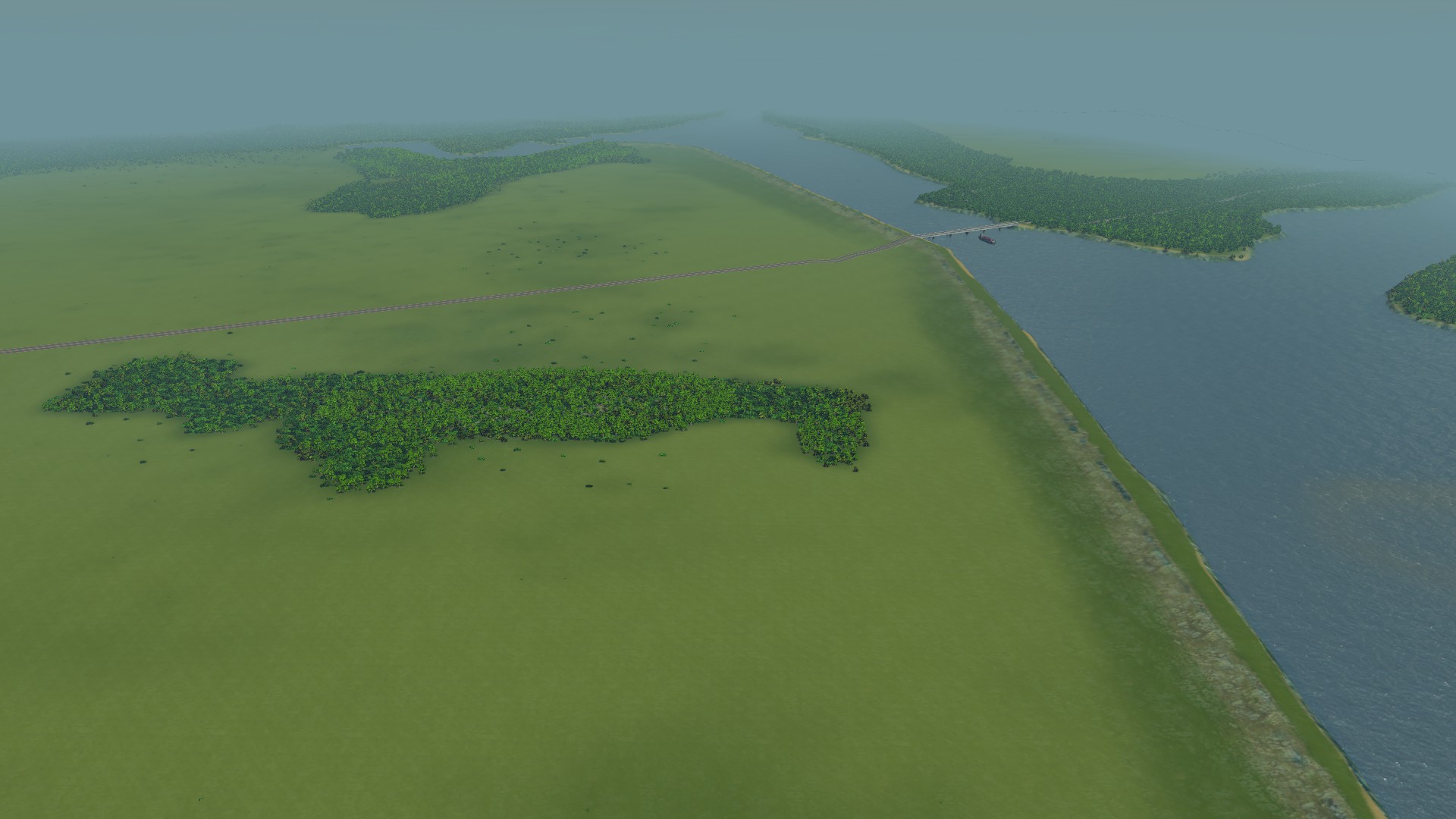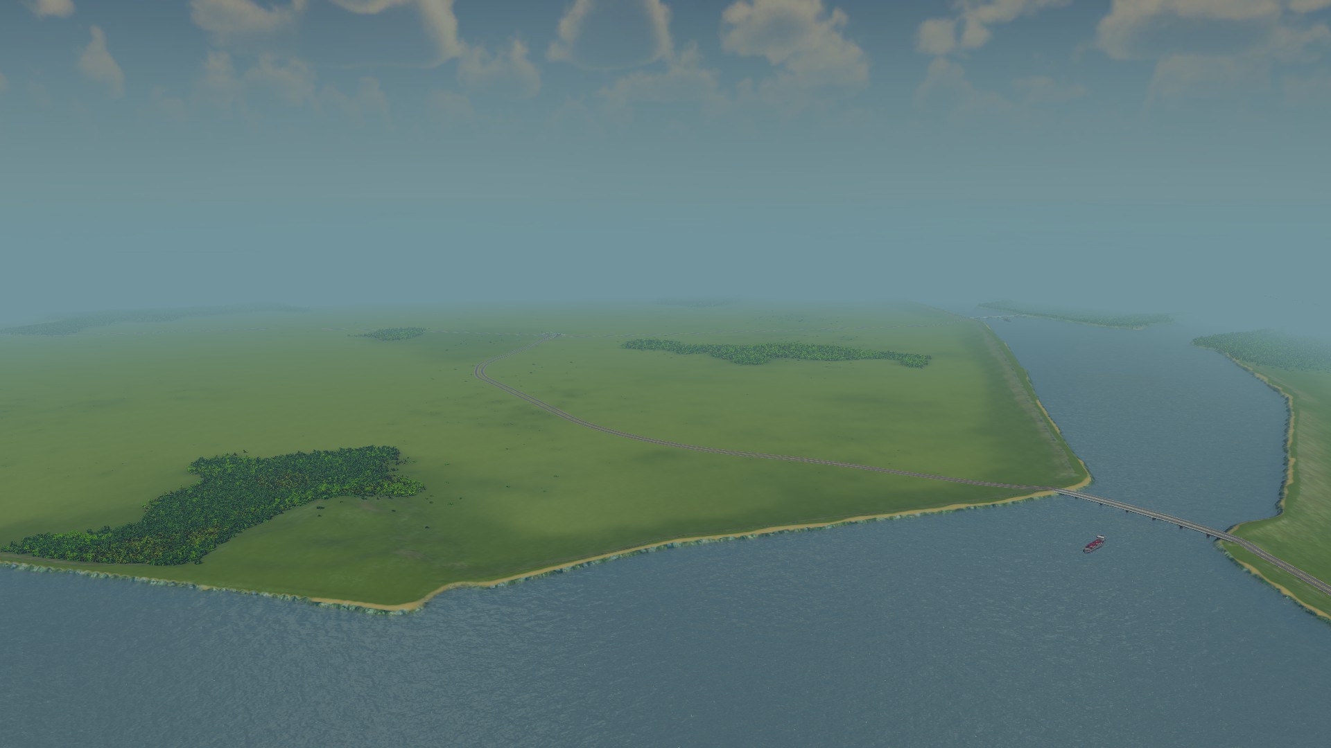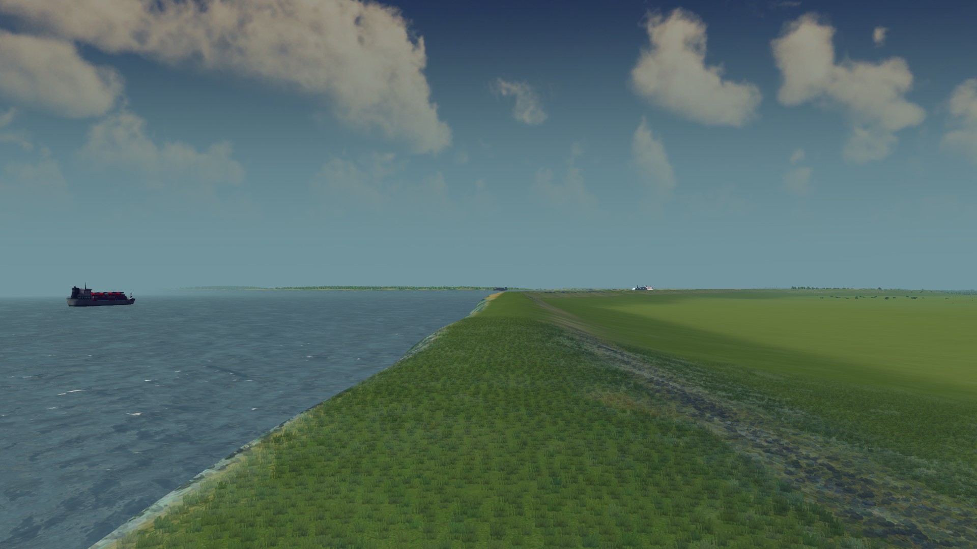 The map itself is very, very flat. I’ve used a heightmap, and only slightly raised the dikes to prevent flooding. From the east the river the IJssel provides a strong current. There are routes for ships along the entire coast. For gameplay purposes I’ve added oil and ore, but only in small amounts. There is also one incoming trainline on the border, though in reality the Noordoostpolder doesn’t have a rail connection.