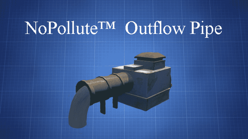 A default outflow pipe with a key difference, it doesn’t change the water color from pollution. Your rivers will not be polluted!