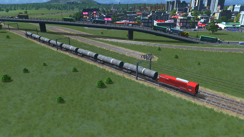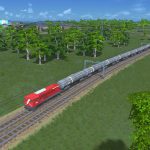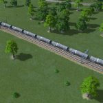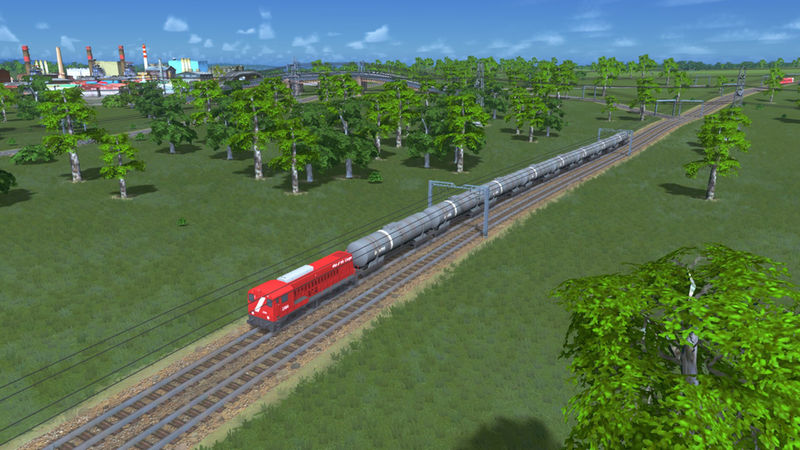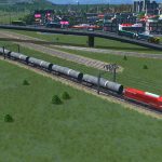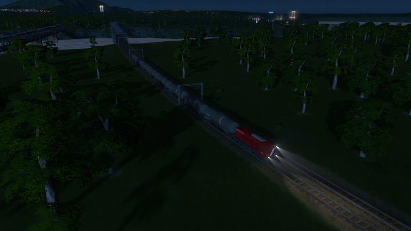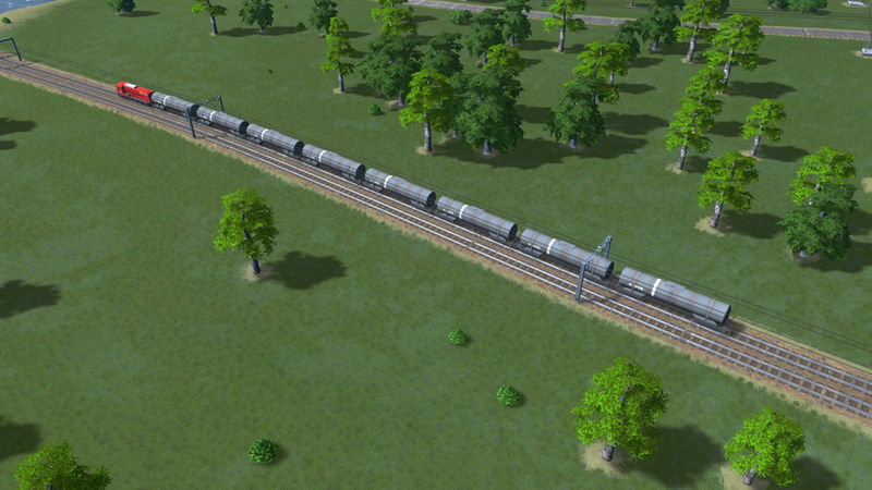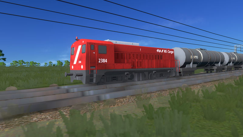 An oil tanker train with 8 tanker cars and a NS 2200 series engine in the livery of NS Cargo. This engine (nr. 2384) was the only one to ever be painted in this red livery.