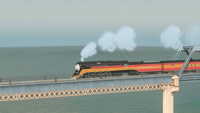 Unlike my usual passenger trains, this one does NOT feature line colors and will always appear in the Coast Range Oceanview livery. This train will overhang most stations for Cities:Skylines, but this was necessary to create a more realistic length of train.