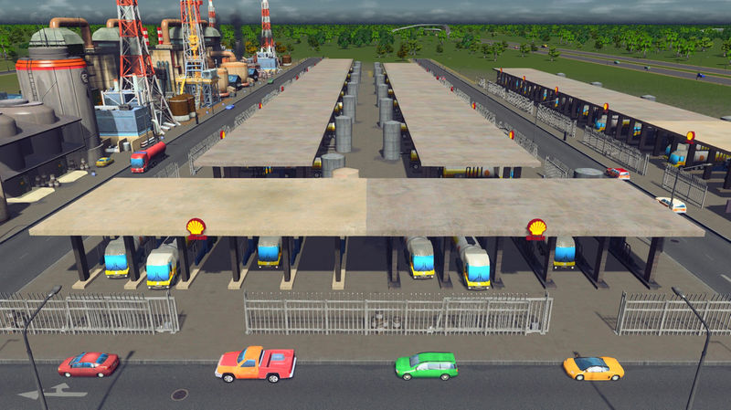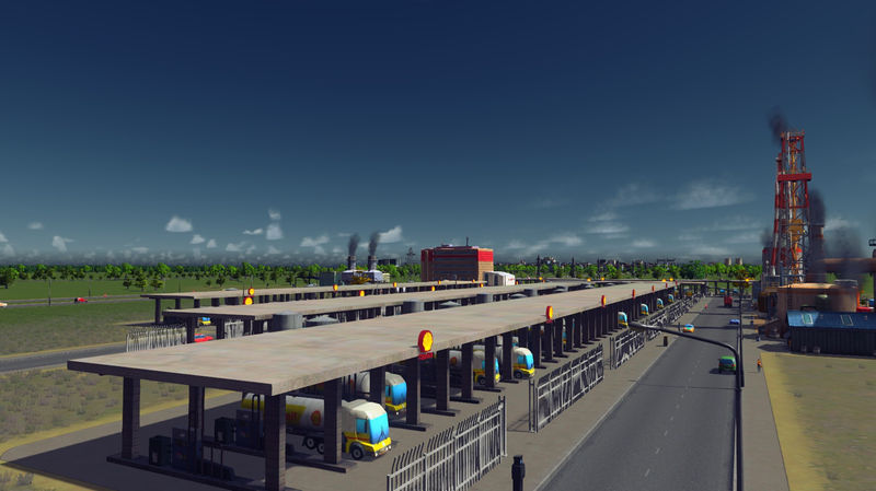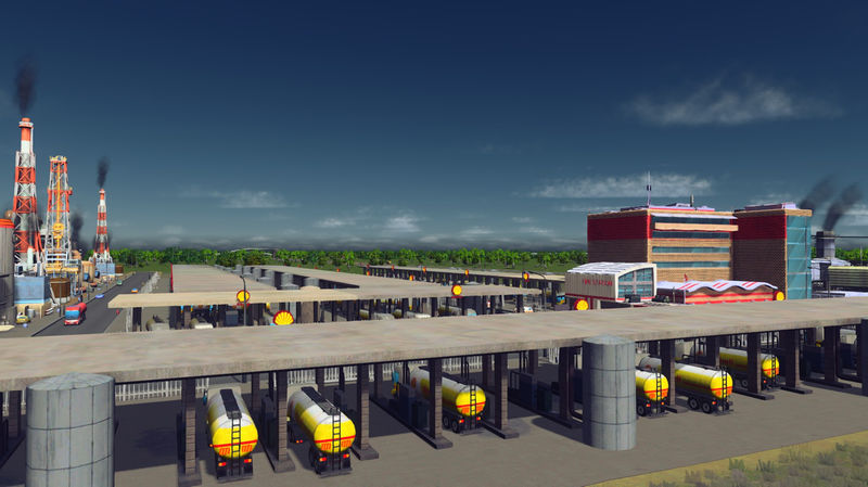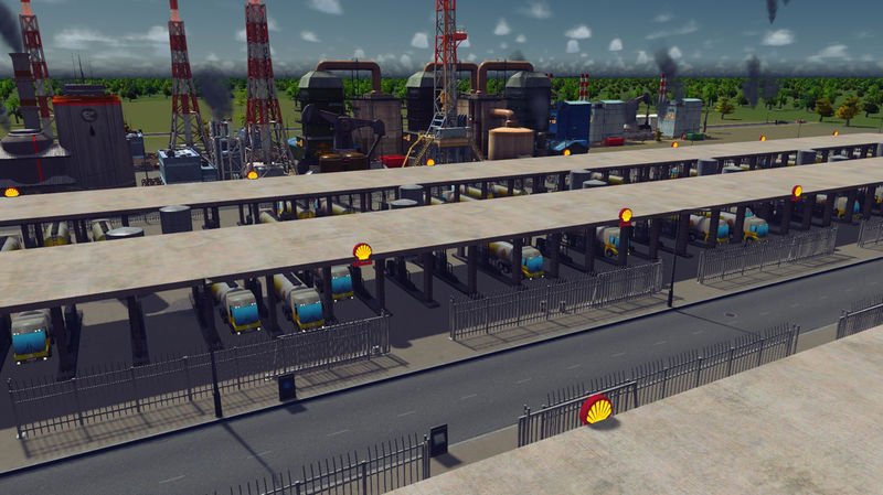 A Shell version of my oil loading terminal! This is 4×4 but when it spawns next to itself they join up perfectly and look like one big building. Note though that the truck prop has a bit high tris count for a prop. The building works fine without it but I think it adds just a little more detail.