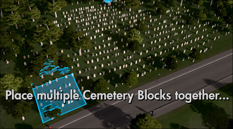With Cemetery Blocks you can create the massive, beautifully landscaped cemetery of your dreams, fill a tiny, oddly shaped space next to a church in the middle of your city or even create a small family graveyard in the woods behind a residential home.