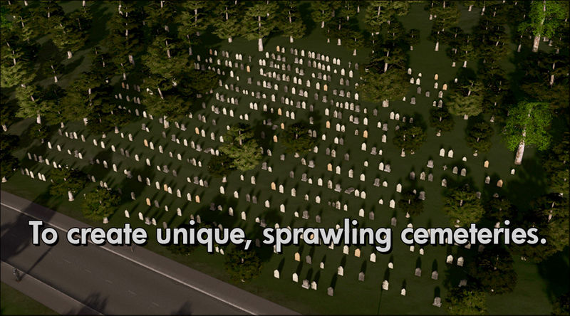 – Use More Beautification and Prop Anarchy to incorporate trees and grave props within the cemetery
