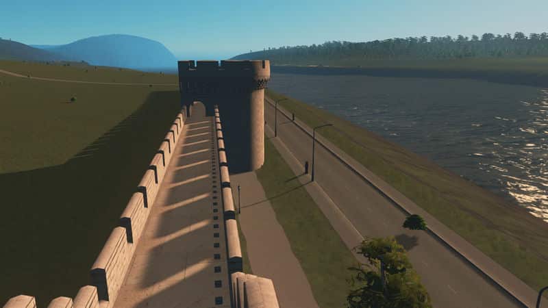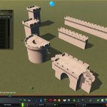 Fair warning: These models have a high triangle count ranging from 4000 – 6000 each because I decided to model the battlements in 3d to create a realistic lighting mood which works very well in Skylines but is very heavy on the triangles. The same 1024 x 1024 diffuse map is supplied for each model to reduce resource consumption. These may have an impact on performance if you have a slower computer and/or place a lot of these pieces in your city.