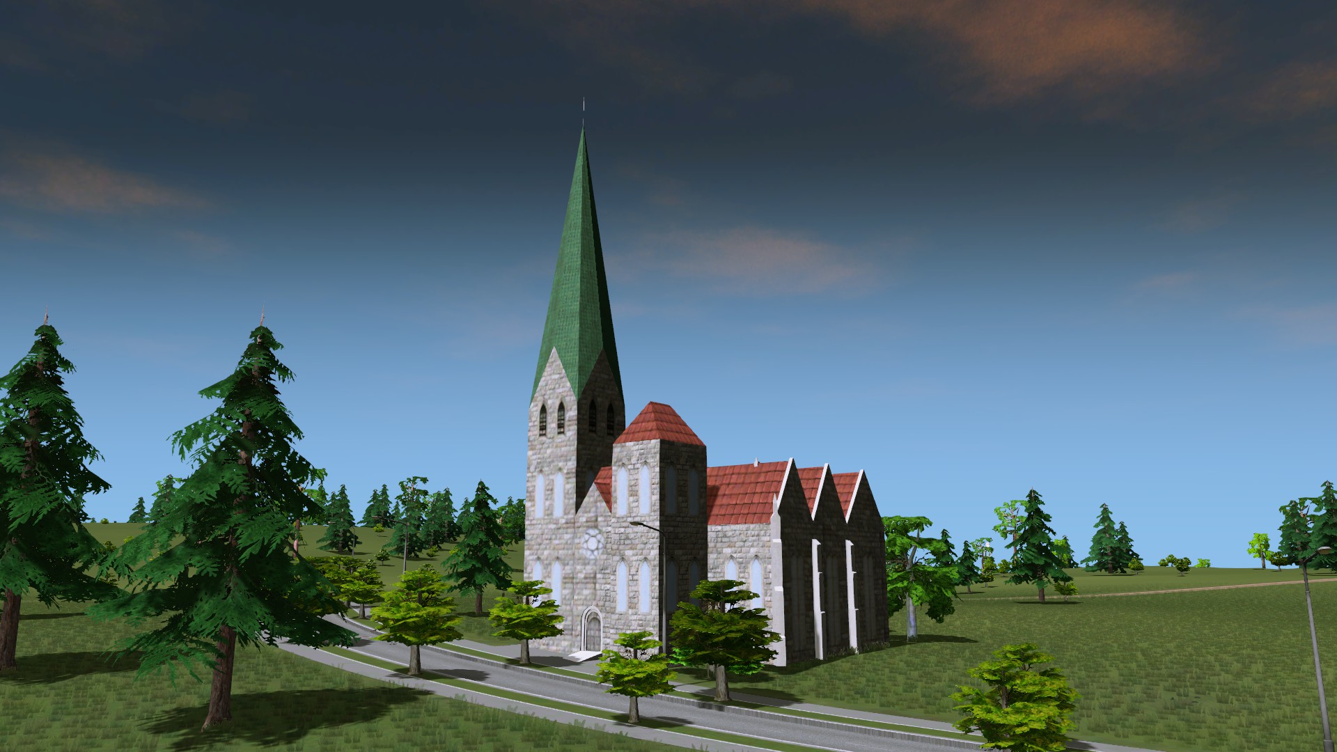 Place this old church in your city, if you want some medieval buildings. Looks best in European Map, but can be placed everywhere. You can find the asset in the monument section, 6.
