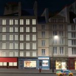A street corner in the style of the historic center of Paris. Inspired by the houses of the neighbourhood of “le Marais”. Some of these dates as far back as the seventeenth century.