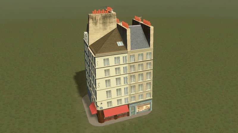 ATTENTION : Though not mandatory, the Paris Chimneys prop has much to do with the “typical” character of the building. If you wish to save on the prop count, at least consider downloading this one with the building.