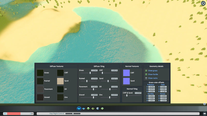 * Since the latest update there are several problems. I too have crazy things going on like gravel appearing where roads join each other and checkerboard waves. Those are problems with the game, not an issue with this theme. So, either I produce a totally new theme that does not customize roads and other textures affected, or we wait for a solution to be found by the devs. Sorry, it’s affecting me too.