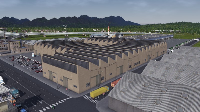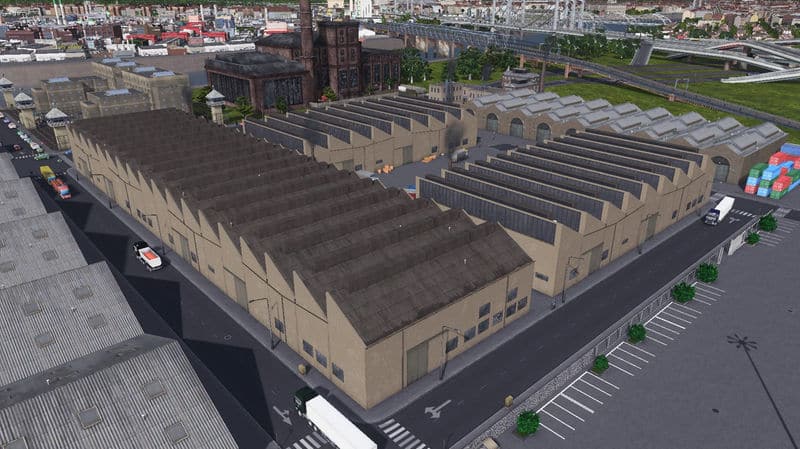 An old warehouse/factory hall with that iconic saw-toothed roof. This one is a little “heavier” than my other warehouses, but if you’d zone the same area with default industry buildings, their combined tris count and textures would be larger than this. Plus this one really deserved that extra bit of detail. ?