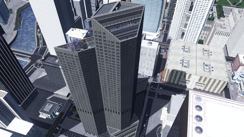 One Mag Mile stands at the very north end of Chicago’s Magnificent Mile district of luxury retail and hotels. While its measly 57 floors leave it dwarfed by its next door neighbor, the Hancock Tower, this building’s hexagonal structure and pink granite cladding make it pop. It consists of 4 towers of varying height, with shopping on the first few floors, followed by offices, followed by condominiums. Take in the views at the rooftop terrace restaurant, or on your own expansive penthouse balcony.