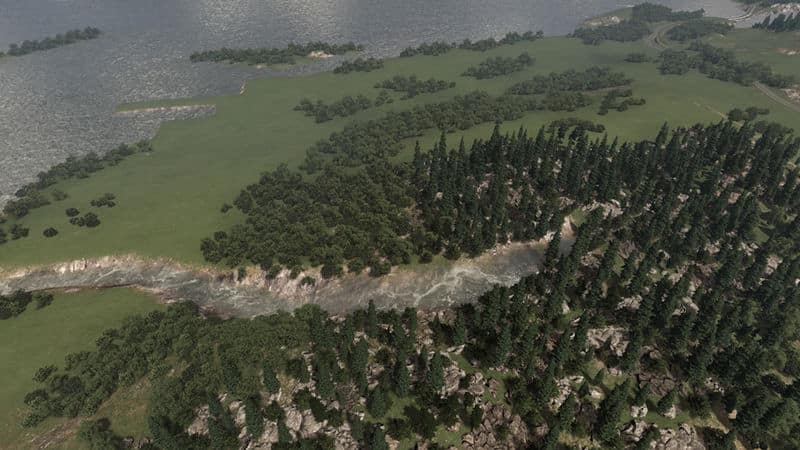 There’s one railroad connection, as well as a national road connecting to the buildable area. Ship and plane infrastructure can be found here as well. There are NO NATURAL RESOURCES on the island so you can easily use the fertile, oil and ore textures for whatever you want (fields, snow, …). Also, I honestly can’t be bothered with adding them at the moment.