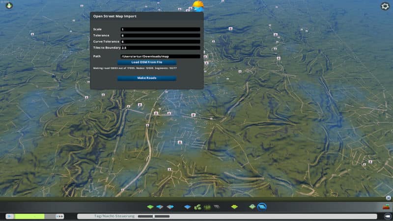 12. After the import is done, click on “Make Roads”. This will take like forever. I recommend to wait additional 10-20 seconds, after the import is done. You can play around with the Tolerance buttons, sometimes the results will be better.