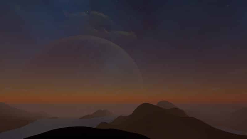 – HUGE one: nighttime. You don’t even have to look up! Massive alien planet (high quality texture) in the place of the moon, the nighttime sky horizon matches the color spectrum of the planet’s corona. From what I can see, it seems as if CO also programmed things so that as the moon goes across the sky, where it is lit changes too, giving it a realistic simulation of rotation! Well now you can *really* see that thanks to this planet! O.O