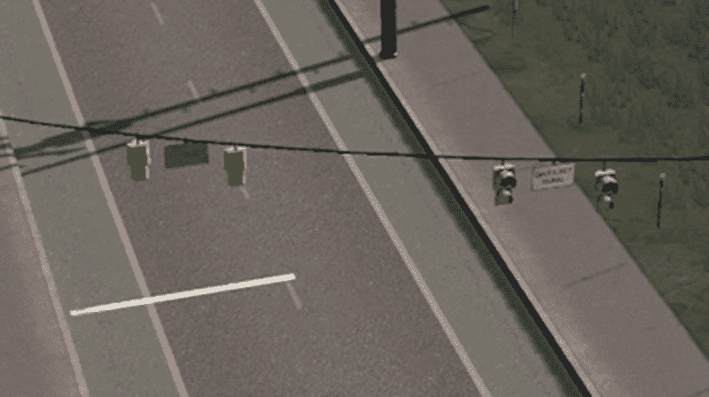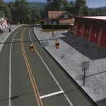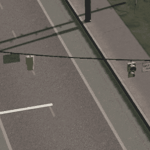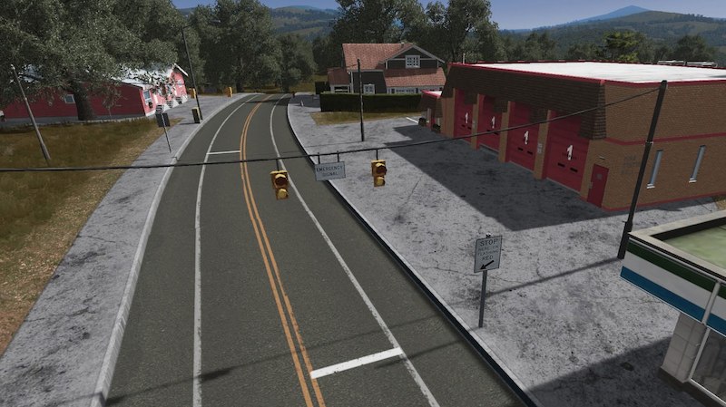 Emergency signals which are cable-mounted above the road, for detailing. Usually used around fire stations or other emergency facilities without any other nearby signals for traffic control. Two versions are included (single- and dual-direction), and there’s a bonus ‘Stop on Flashing Red’ sign included, too. The cables are long enough to string across small roads (2-lane or small 4-lane) with plenty of room to spare.