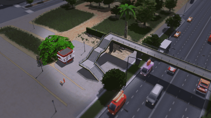 This is a supplement for the awesome Low Pedestrian Overpass by Sims Firehouse. This asset add the similiar looking at the other side of the overpass. Act as a small park, too.