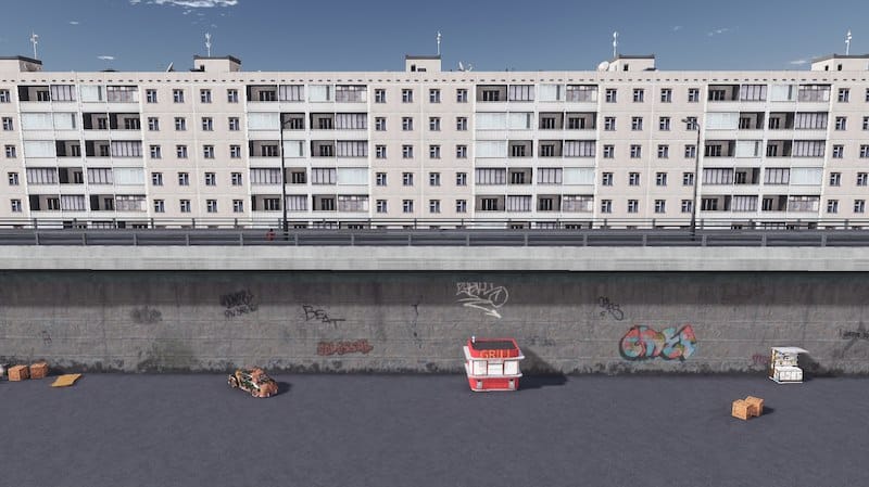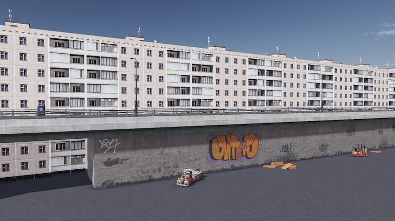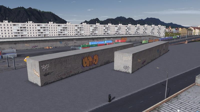 This contains two pieces – one 6 units long and one 12 units long. Both are 12m high and have different graffiti and color variations for those long stretches of wall.