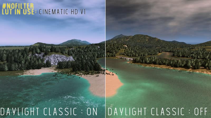 Turning off Daylight Classic -Classic Sunlight Intensity- may cause high exposure looking. I’ve tried everything to prevent it happening but sometimes it works and sometimes it doesn’t. It overdrives the theme’s exposure settings when its on and turns it back to the original state of the theme editor not the theme’s itself. So lowering the exposure of the theme didn’t work for me. Not always anyway. If you have any knowledge about that please let me know.
