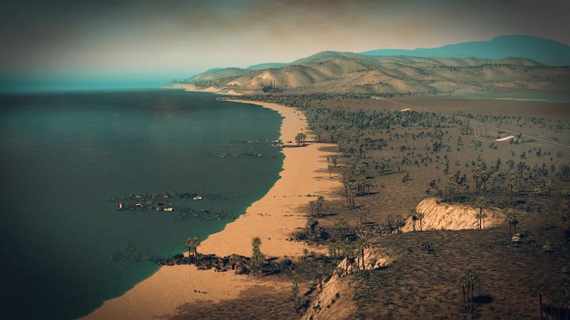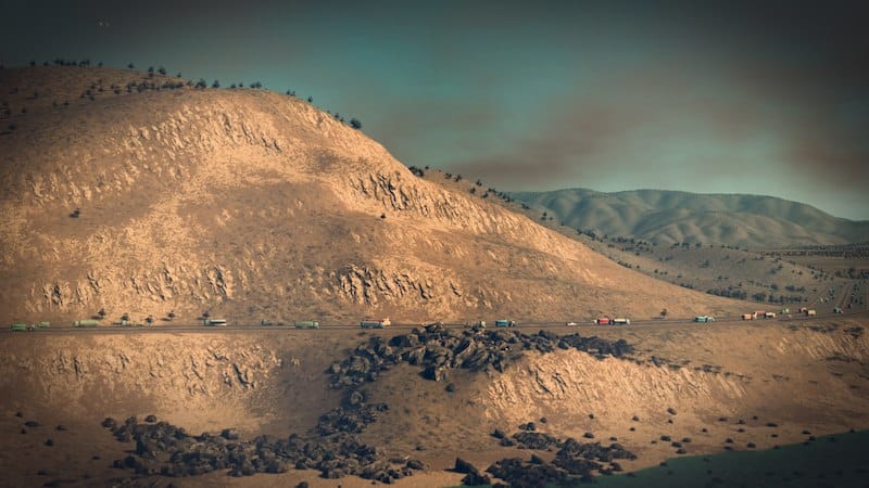 I don’t change pavement texture into any kind of non-flat colored tiling texture because since it is projected to the top view, it causes more obvious stretched look on the vertical surface of the dam.