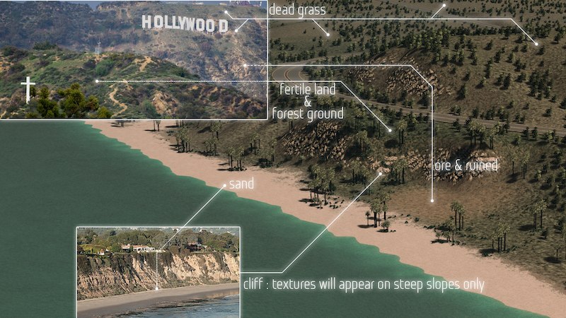 + Ore Texture’s tiling scale has been increased, alpha mask is more obvious and %5 less saturated. Now you can paint the map with an excelent transition.