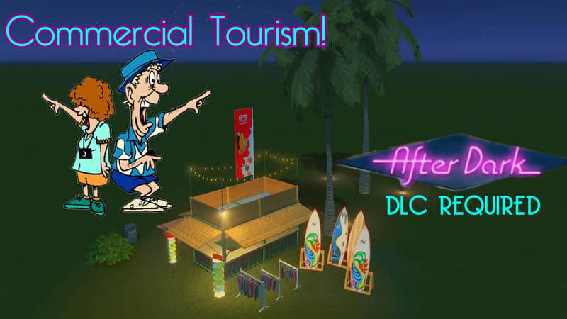 Commercial Tourism! It’s been over a year that After Dark DLC has been out, and there are still only 21 Tourism items on the Workshop, so.. I decided to share more of the customized specialized commercial assets that I use personally. Why not?