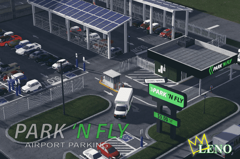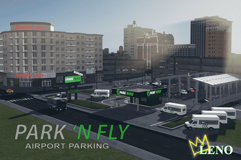Airport parking/shuttle. I changed the name of the building while working to fit with ninjaboobslayer’s Park ‘N Fly Shuttle and Buses. Asset only includes building and sign/prop.