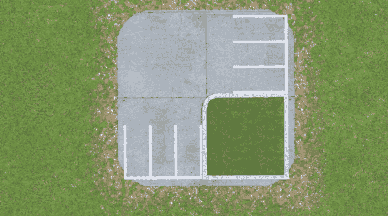 This one works as an inside corner for my other parking lots with an R in the name. Unfortunately, there aren’t many (I only know of one and it comes with its own parking) building assets that will fit around this piece, but hopefully in the future someone will make something. This one is just ahead of its time for now.