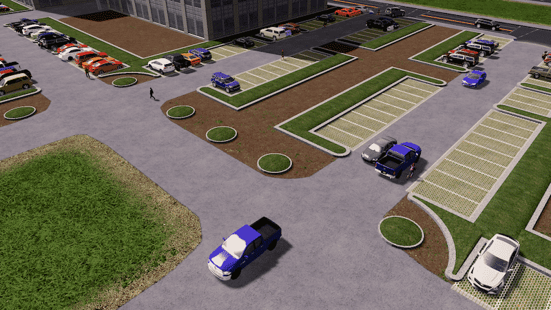 Have your parking lots always felt kind of dead? No cars driving around inside them and no people walking around the rows of cars? Or the lots looked a little disproportionate (too much “aisle” to parking space ratio). Well, I have a solution.
