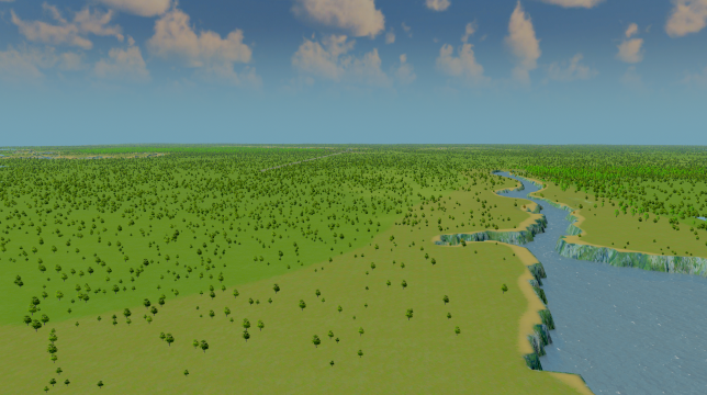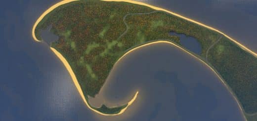 The map is very flat, so it’s easy to build a huge city here. The shoreline on the bottom of the map is ideal for harbours. I recommend using a 25 tile mod, so you can untilize all the different areas of the map.