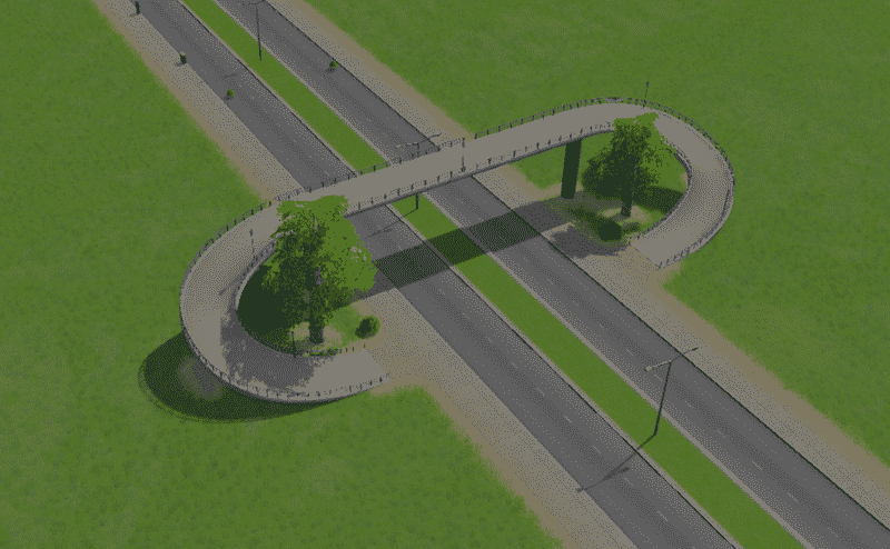 There are a series of these that allow you to simply place a pedestrian overpass right over a small, medium or large road ? . Road not included, I hope you enjoy