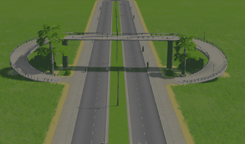 There are a series of these that allow you to simply place a pedestrian overpass right over a small, medium or large road ? . Road not included, I hope you enjoy