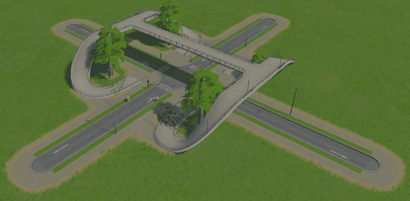 There are a series of these for small, medium and large roads that allow you to simply place a pedestrian overpass right over an intersection or along the road of your choice ? . Road not included, I hope you enjoy