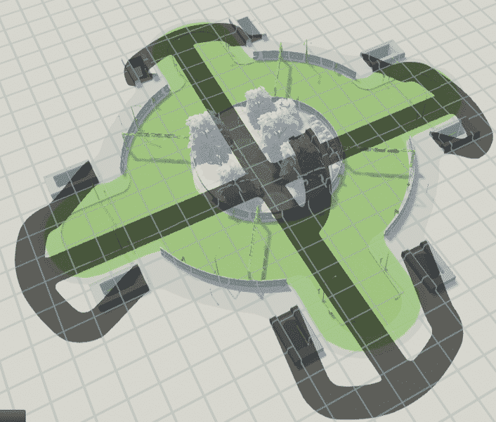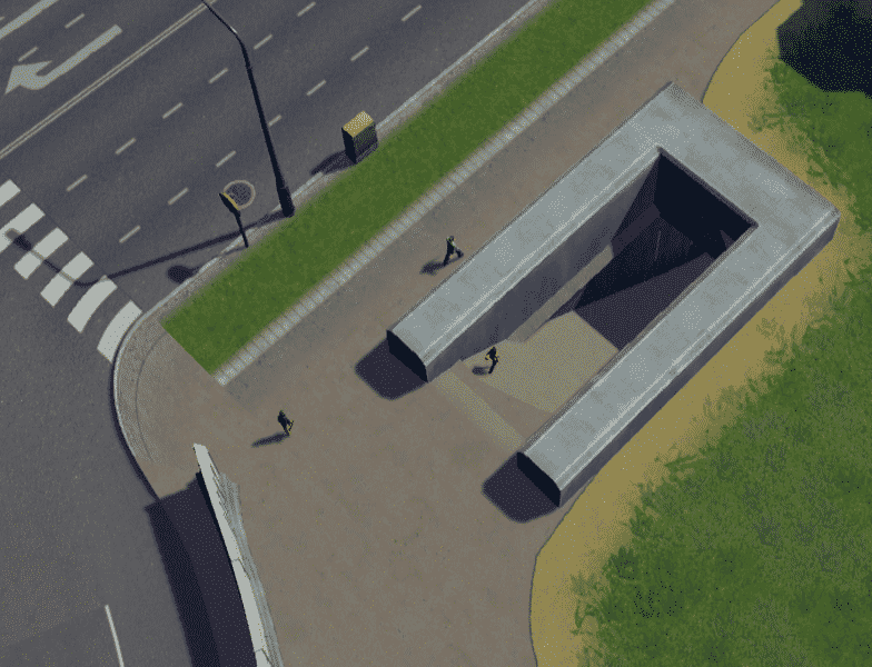 – Full sidewalk all the way around and under roads and the tunnel entrances are lit if using After Dark