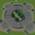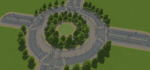 This is not just another round about… extremely fast roundabout with built in pedestrian control for happy Cims that use the underground sidewalks to cross under the road so they do not block traffic…