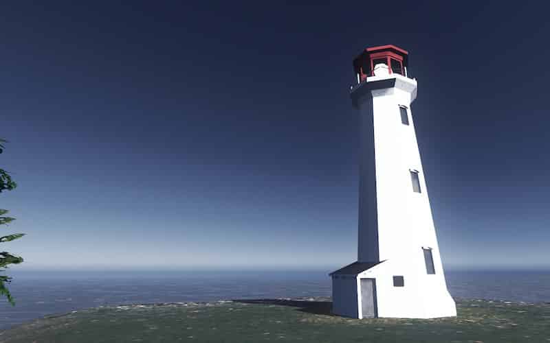 Many, many thanks for Ronyx69 for his PropRotating Params mod and script. The lamp, which is a small prop bundled with this asset, rotates and is illuminated at night by its illumination map. So it’s a somewhat functional lighthouse. Unfortunately, the animation ceases when the lod model kicks in. Can’t do anything about it – just a limitation of the game. Still, it’s a neat effect.
