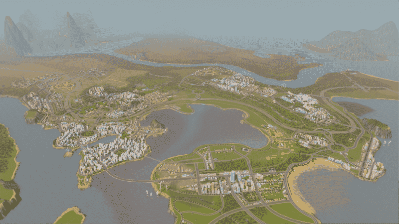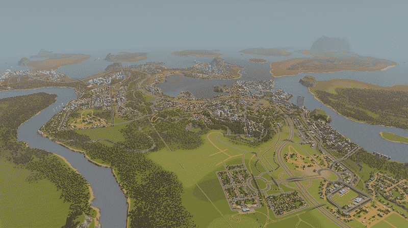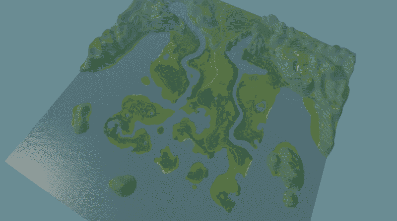 A flat fertile peninsula surrounded by some islands. Great for a city-state or just a self-contained isolated corner in your country.