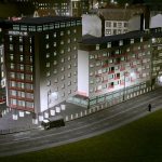 Perla is residential building located in Budweis, Czech Republic. This building was constructed in 1964 and it was part of a centrally planned urban development experiment conducted from Prague. The aim of the “experiment” was to test new construction techniques and materials such as reinforced concrete for rapid construction of residential cells, as well as to promote the political idea of “collective living”. This means that buildings like Perla had their own canteen for residents and places for leisure activities such as the top-floor café and cinema in this case.