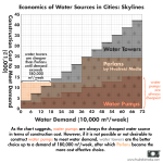 This building is meant for cities that already have a large demand for water. It produces as much water as 6 water towers or 3 pumps. It costs as much money as 3.4 water towers, in which case it is a cost savings if your city relies on water towers, but it costs as much as 4.8 water pumps, so it is still more expensive than relying solely on flowing water sources. So, when a city begins requiring over 360,000 m³/week, it is a good idea to replace existing infrastructure with a Perlan if your city relies on water towers.