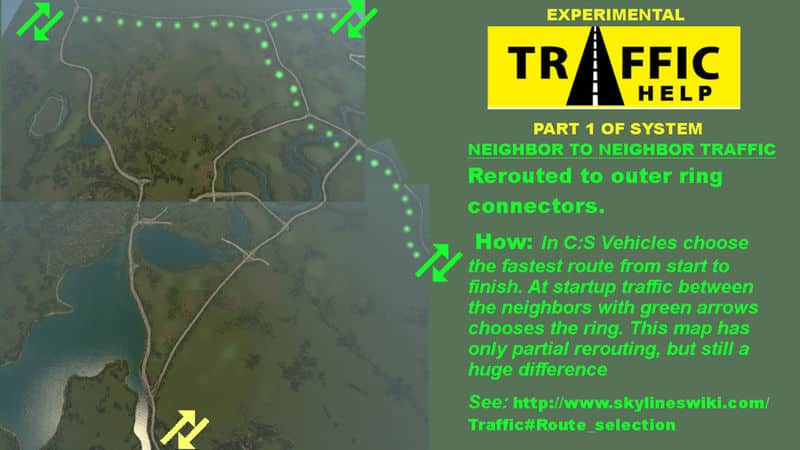 “There’s no highway traffic yet!” Don’t worry, it’s working right! The first trickles of highway traffic don’t start coming in for a while, but they will come! See images for visual explanation. A big chunk of the neighbor to neighbor traffic will not be clogging up your downtown highways (unless you build them a more efficient connection right through your downtown).