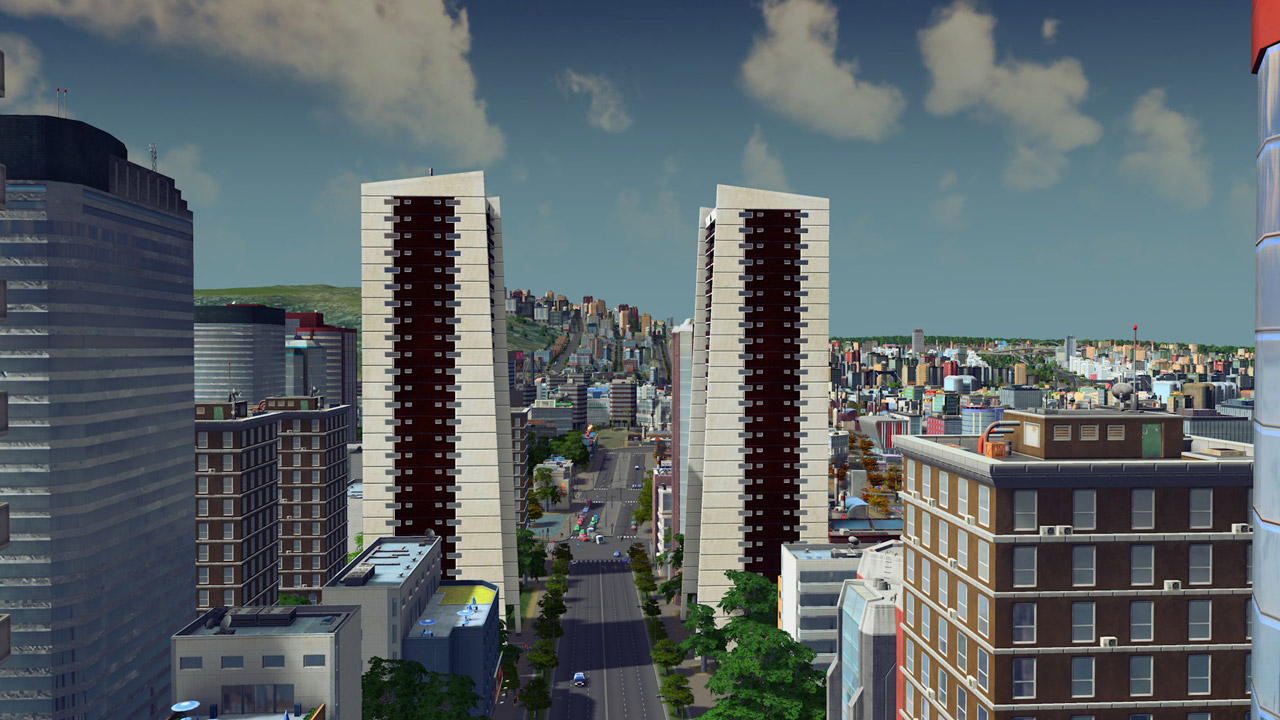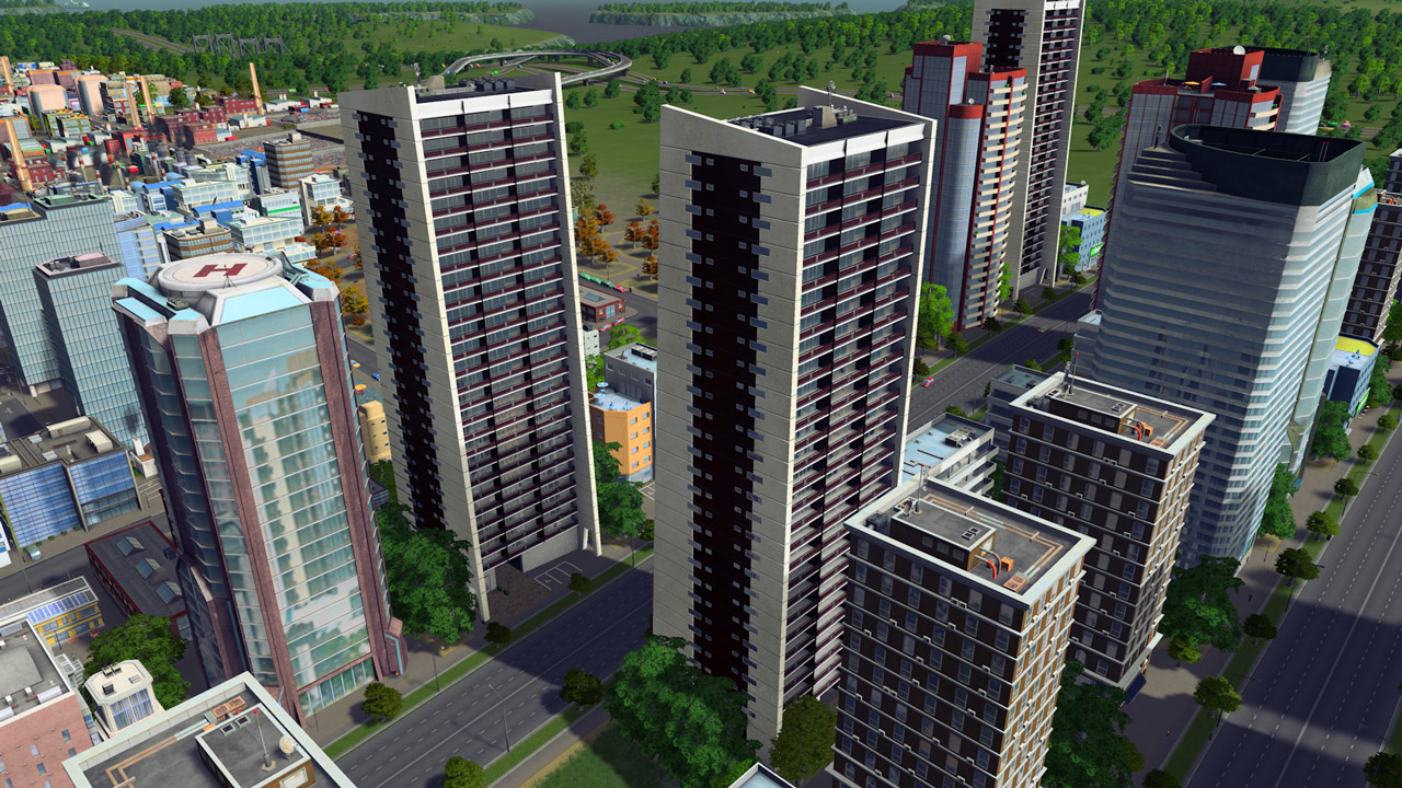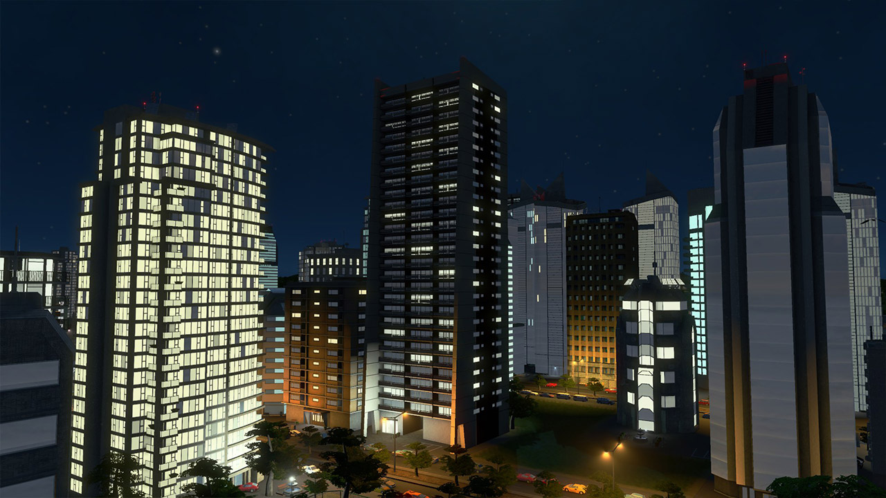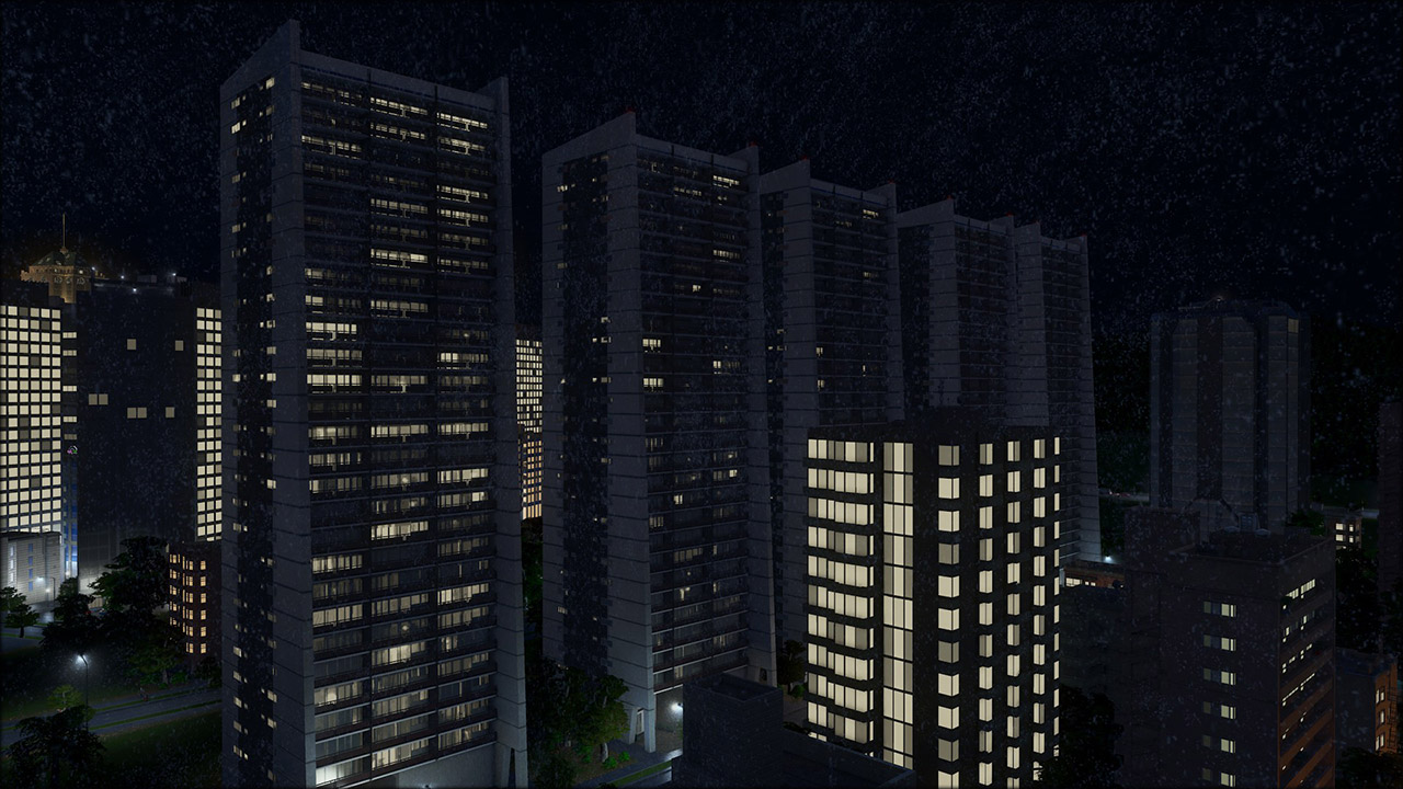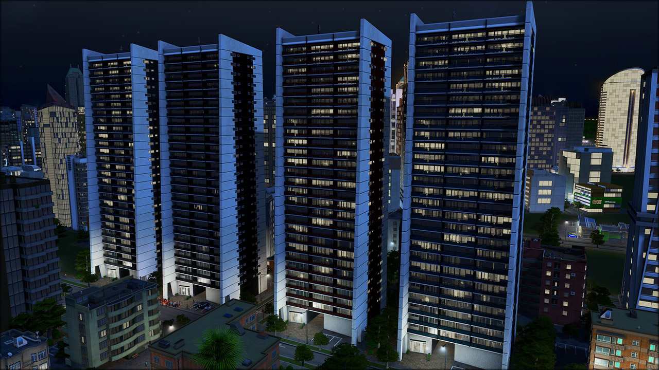The building is about 720 triangles and has a custom LOD (with custom textures) so it looks good from far away too, the textures are 1024 (128 for the LOD and 66 tris).
