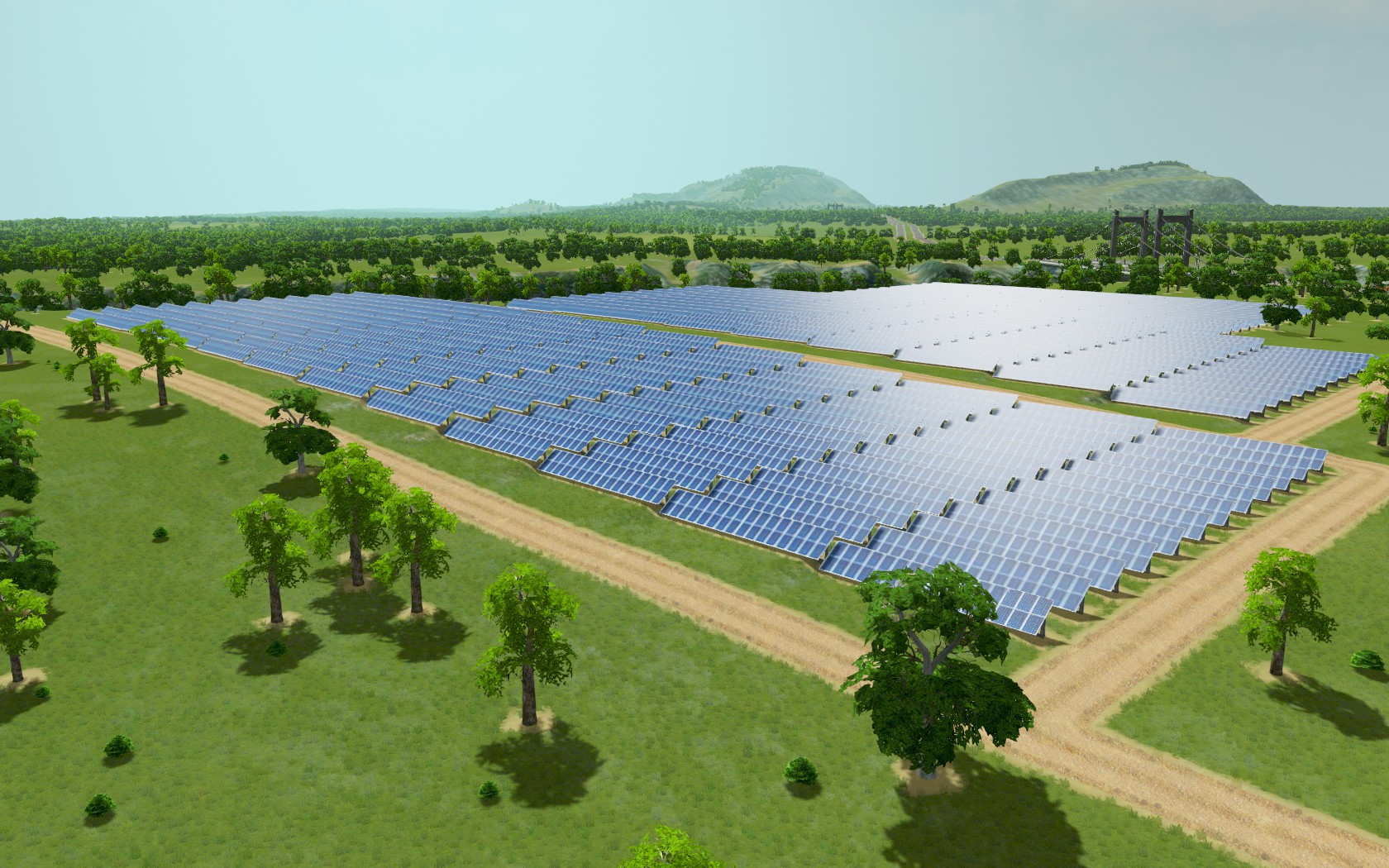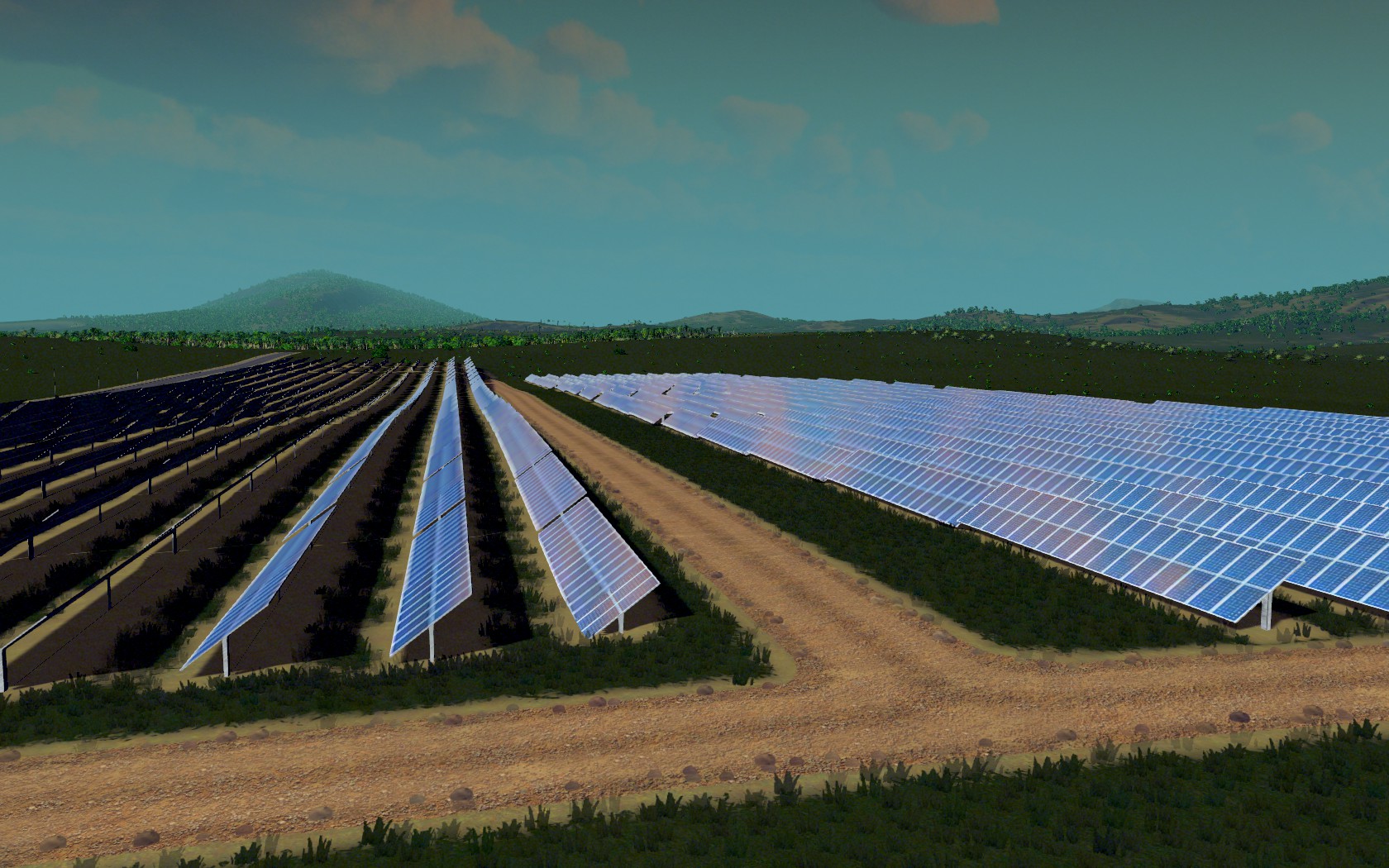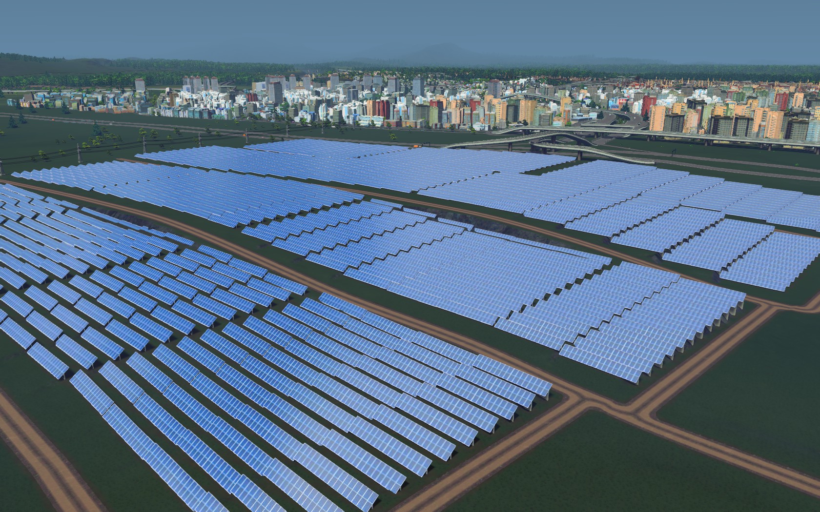 Idea is that a PV solar park uses more area and is more expensive to build initially then wind, however its upside is no noise and low running cost (analogy to real life, almost no maintenance or moving parts)