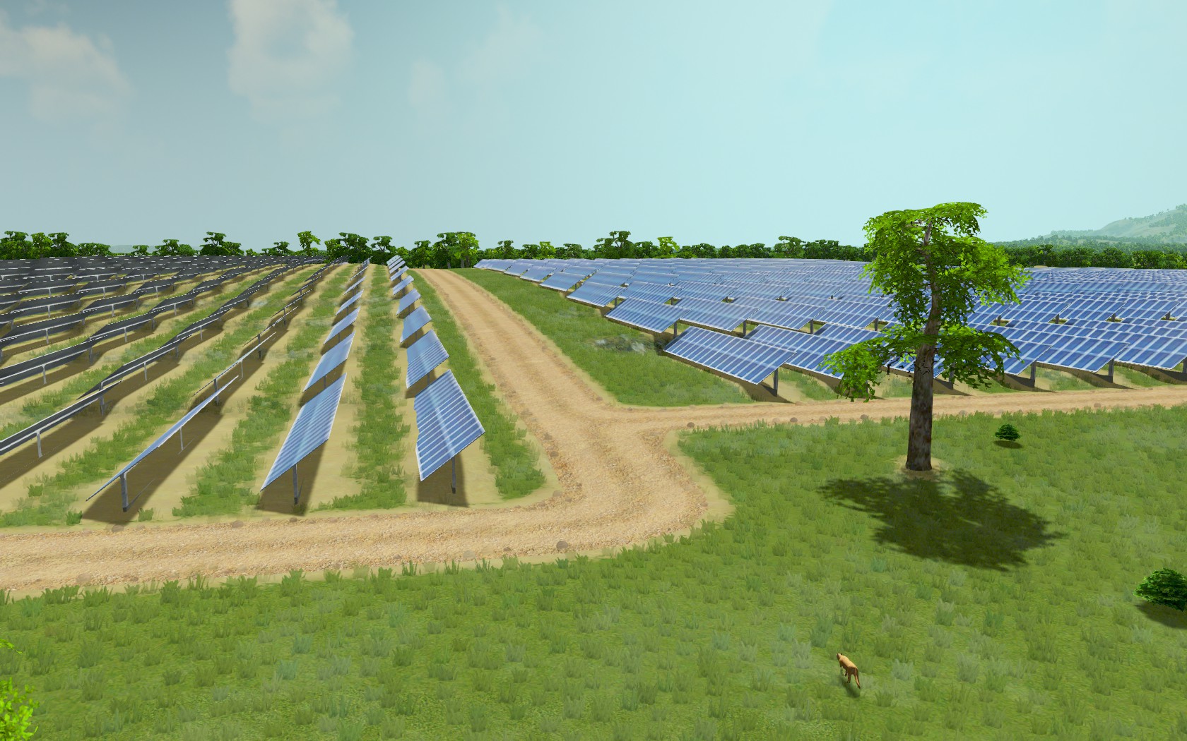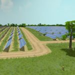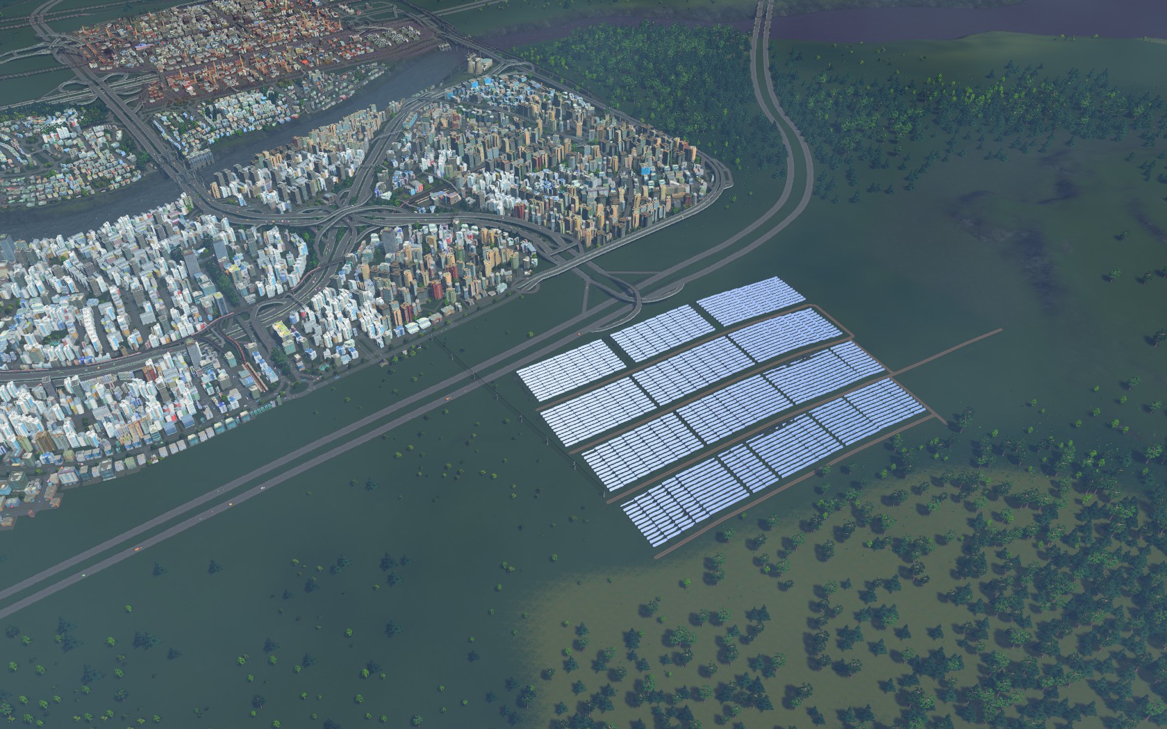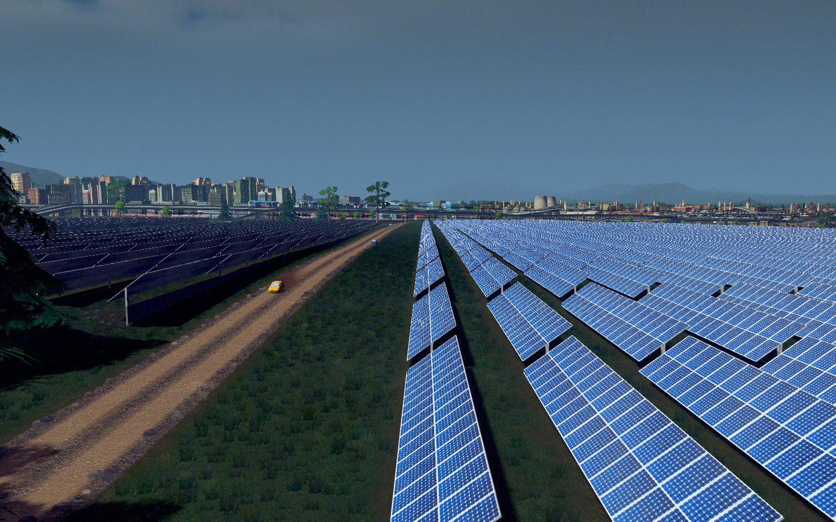 Idea is that a PV park uses more area and is more expensive to build initially then wind, however its upside is no noise and low running cost (analogy to real life, almost no maintenance or moving parts)