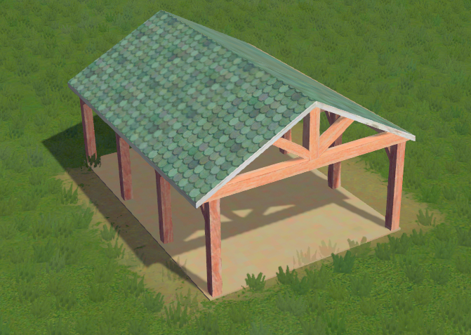 A covered area where Cims can gather in a park. A prop useable in the park editor.