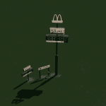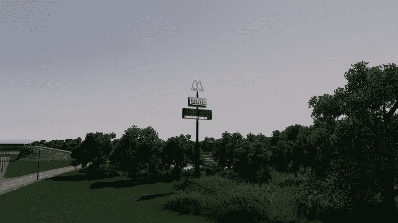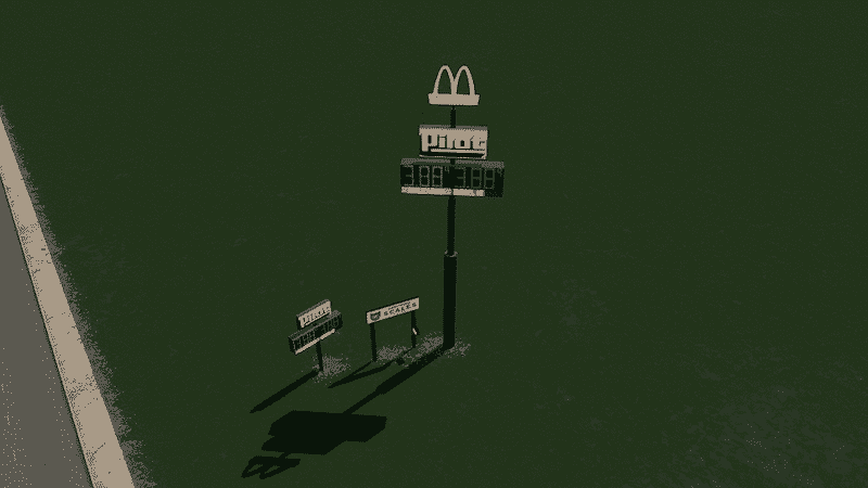 – Tall “high rise” sign featuring the McDonalds logo and gas prices