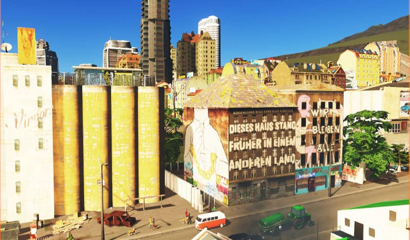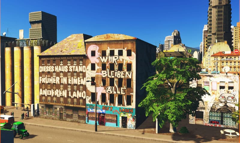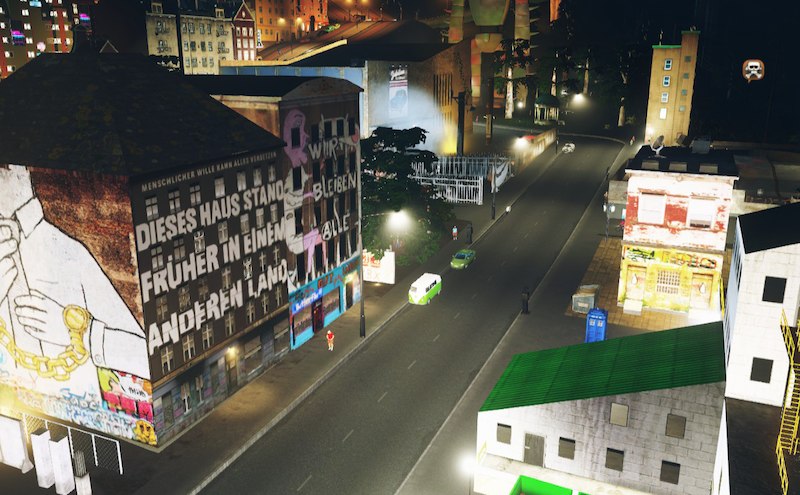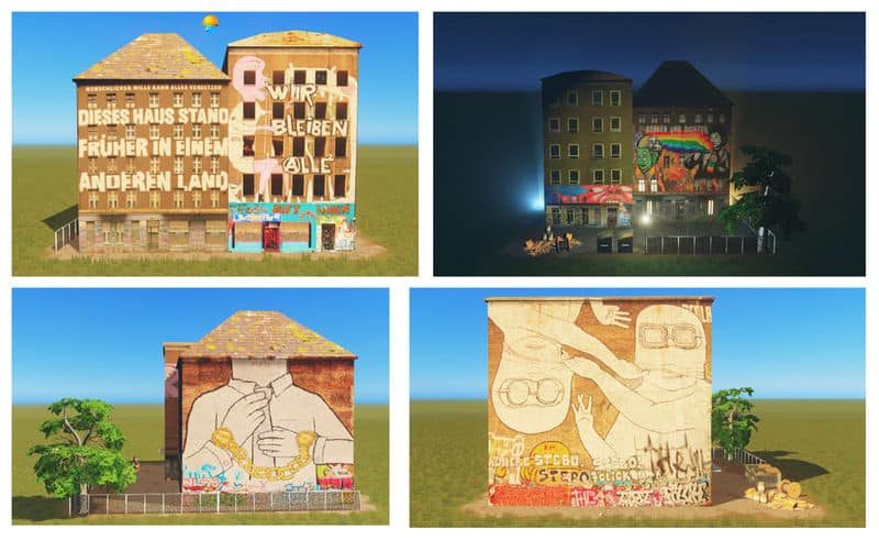 On the right and left side of the building i used graffiti made by the italian street artist Blu in Berlin. He is actually erasing all the murales in Bologna. This is an action against the rich and powerful who take street art off the street for an exibition in a museum. As he has already done in Berlin, his action is against a model based on private accumulation wich use life and creativity for the profit of the usual few people.