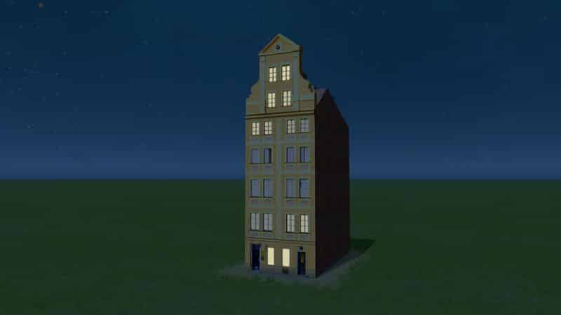Kamienica (plural kamienice) is a Polish term describing a type of residential tenement building made of brick or stone, with at least two floors. The word is usually used to describe a building that abuts other similar buildings in the manner of a terraced house. The ground floor often consists of shops and other businesses, while the upper floors are apartments. Kamienice have windows in the front, but not in the gables, since the buildings are close together. This type of building is most prevalent in city centers, especially in historical rebuilding of previously destroyed parts of old town districts. The name comes from the Polish word kamien (stone) and dates from the 15th century.