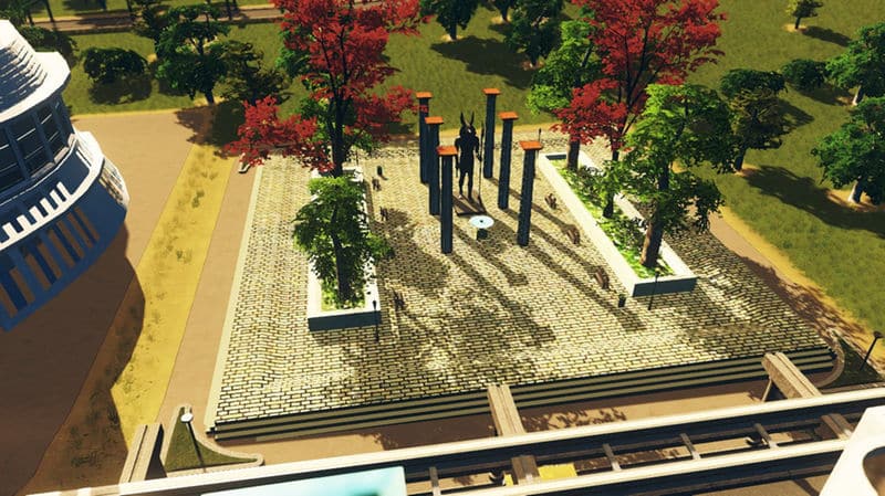 ANUBIS is an ancient Egypt God. He is the Lord of the Afterlife. The plaza’s design is strong, with high columns and marble garden walls. The ilumination is kind of gloomy, dark and try to create a somber ambience.
