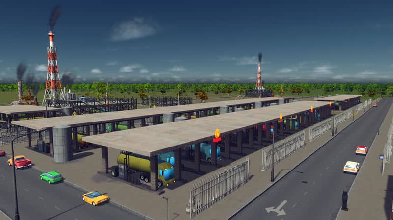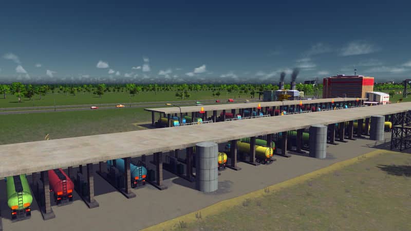 A ploppable version of my oil loading terminal. It’s 4×4 and when placed next to itself they join up perfectly and look like one big building. Note though that the truck prop has a bit high tris count for a prop. The building works fine without it but I think it adds just a little more detail.