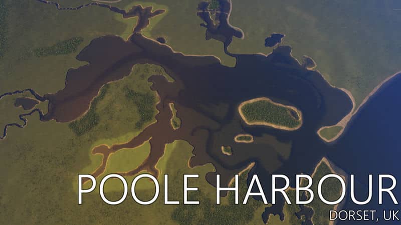 Home to (as the locals boast) the world’s largest natural harbour. Located at the estuary of several rivers. Featuring many mudflats and national nature reserves to the south. To the north is a large dredged shipping channel to the main docks at Poole. Neighbouring Bournemouth is partly included in this map.