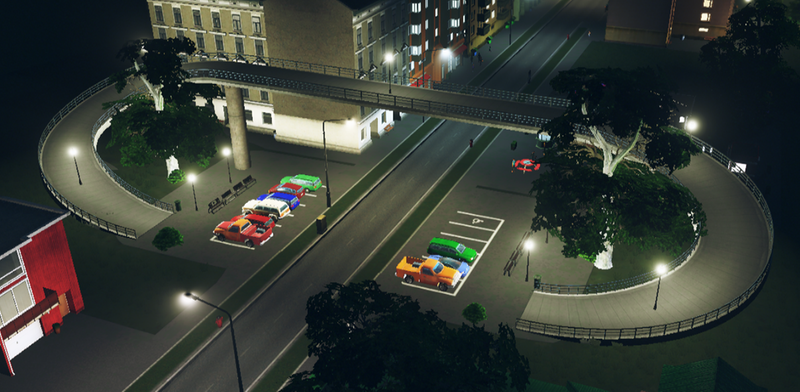 I have found if you place a park next to this overpass and it is far more populated without foot traffic crossing your roads (GREAT to seperate High Density and Low Density areas by the way) .