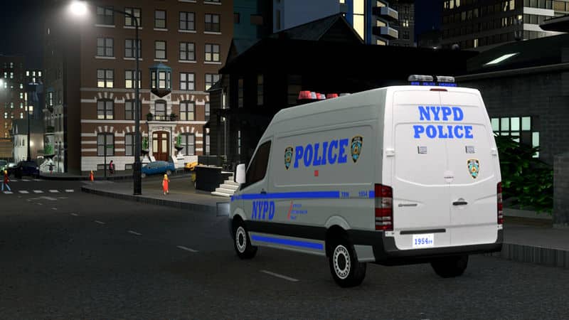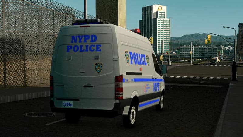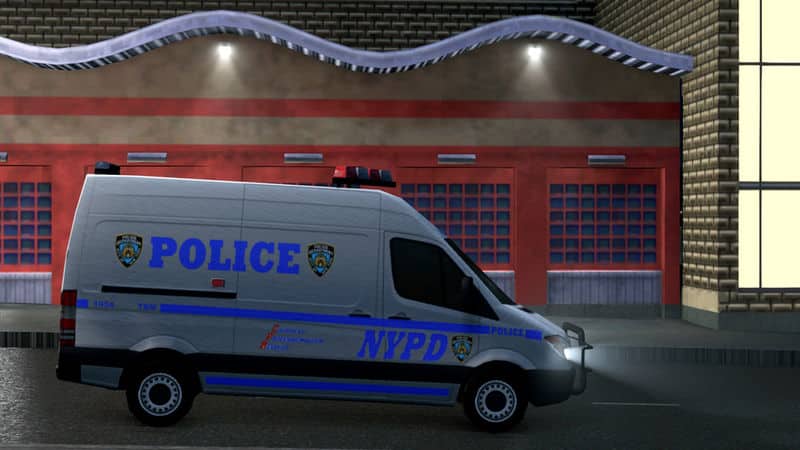 A converted Mercedes Sprinter is a mainstay of NYPD. As it’s newest police van (used more commonly than the Transit), it serves in all roles, such as an ESU, Paddy Wagon, and Police Transport. Most versions come with a bullbar, so this one does as well.